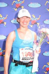 on finishing her first marathon at Rock n Roll in San Diego, and to Moselle for her finish